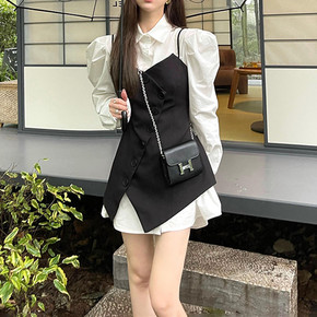 实拍马甲衬衫长款连衣裙女2021年秋季韩版时尚新款...