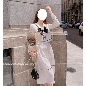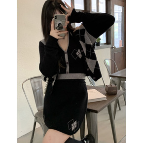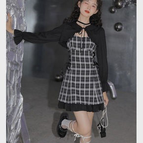 2021年初秋季新款款甜美短款长袖开衫+黑白格子吊...