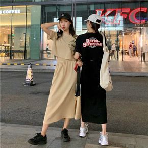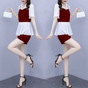 时尚两件套女夏季2021新款复古宽松短款chic印...
