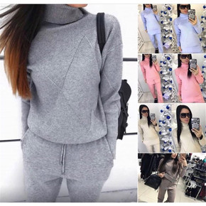 2021速卖通毛衣针织裙套装高领休闲女式运动服两件...