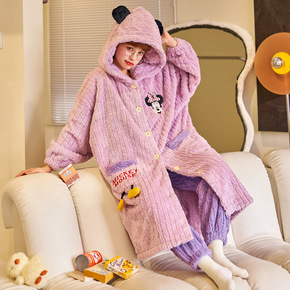 睡衣女冬法兰绒加厚珊瑚绒连帽套头甜美可爱卡通长毛绒...