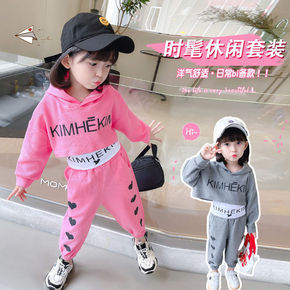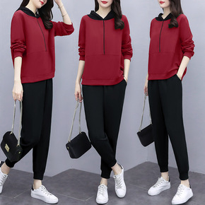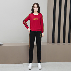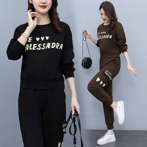 大码女装洋气减龄字母长袖运动套装春秋季新款胖MM显...