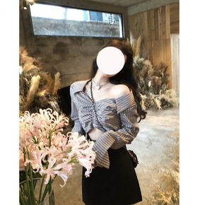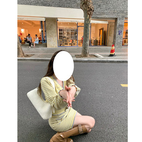 网红 心动狙击biu/2021秋新款小个子条纹针织...