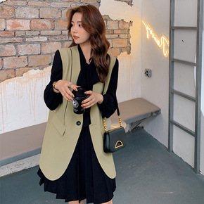 韩版OL气质休闲经典圆领长袖西装外套+复古长款百褶...