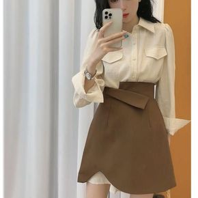 洋气套装女复古港味秋季2021新款衬衫显瘦半身裙两...