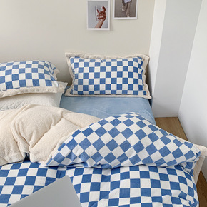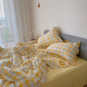 韩国彩色格子小清新荷叶边双层纱四件套公主仙女床上被...