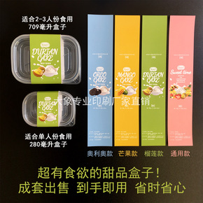 封签甜品豆乳蛋糕盒子水果捞打包盒外卖封条腰封纸套封...