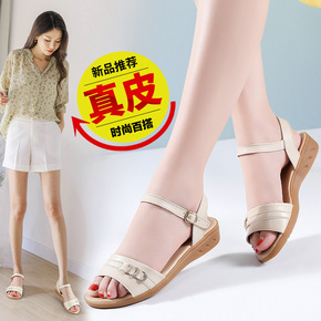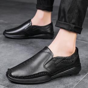 男鞋2021新款春夏透气男士休闲皮鞋真皮软底潮流百...