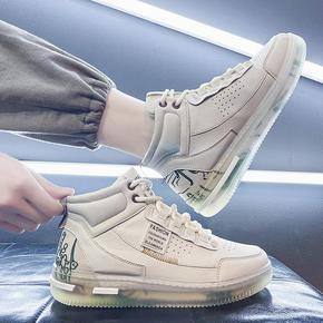 男鞋夏季白色高帮空军一号莆田运动休闲透明果冻底板鞋...