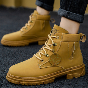高帮马丁靴子秋冬季新款2021男士工装皮靴高帮潮搭...