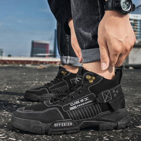 马丁靴男2021秋冬新款时尚英伦风中帮靴子网面高帮...