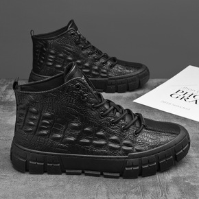 2021秋冬季新款皮面高帮厚底休闲鞋高帮前系带运动...