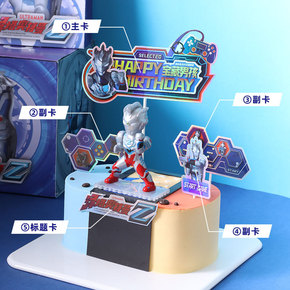 网红英雄超人打怪兽生日蛋糕装饰品儿童创意情景派对主...