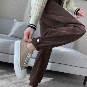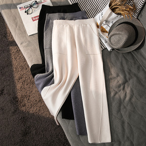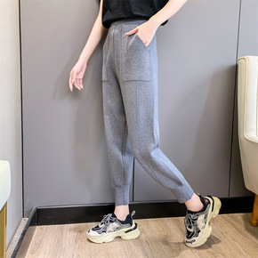 针织小脚哈伦裤女2021秋冬新款休闲宽松加厚阔腿奶...