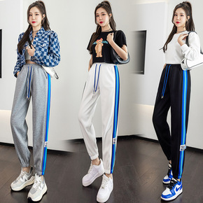 休闲束脚裤女撞色哈伦裤运动裤秋冬卫裤小个子宽松百搭...
