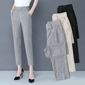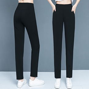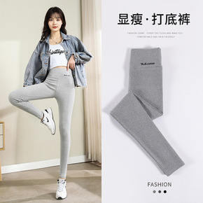 秋季新款休闲裤女外穿大码弹力紧身裤修身显瘦灰色九分...