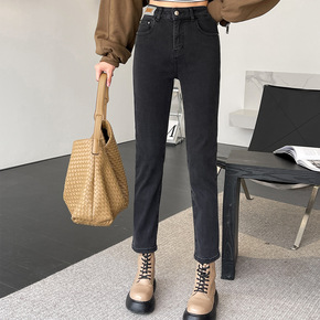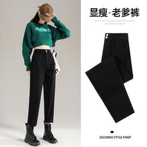 黑色牛仔裤女秋装2022新款高腰显瘦休闲直筒哈伦萝...