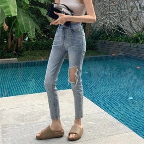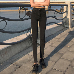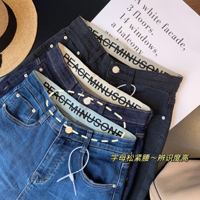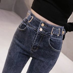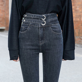 高腰牛仔裤女春秋2021年新款韩版修身显瘦显高紧身...