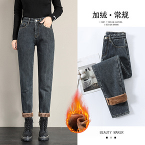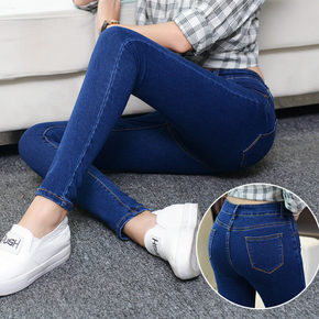新款加绒加厚牛仔裤女装小脚保暖棉裤女弹力修身裤子女...