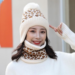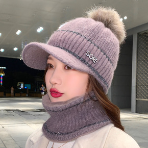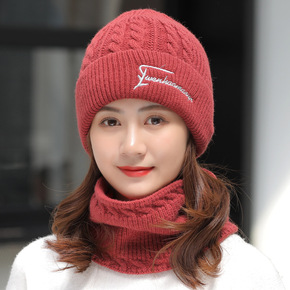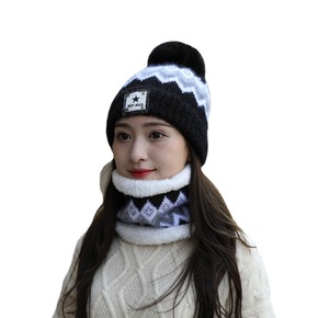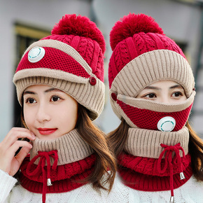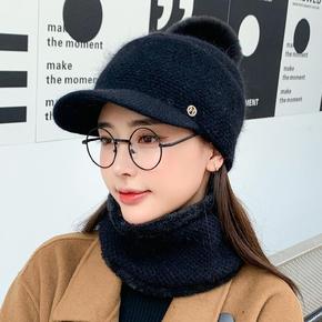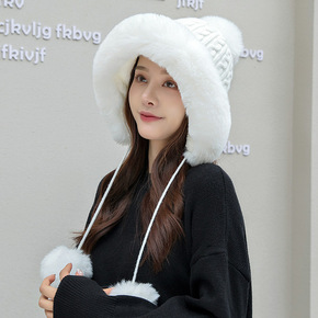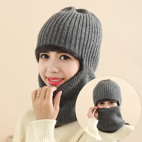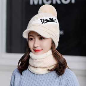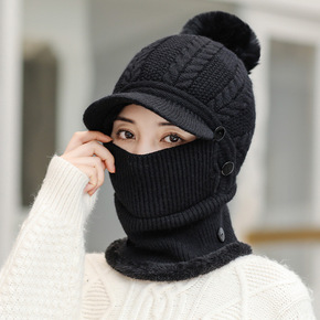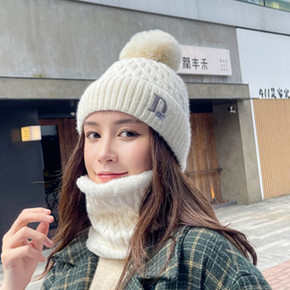 帽子女冬天防寒针织加绒围脖毛线秋冬月子毛线冬季骑车...