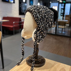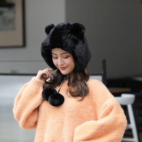 帽子女秋冬雷锋帽韩版复古日系毛球护耳帽显白显脸小加...
