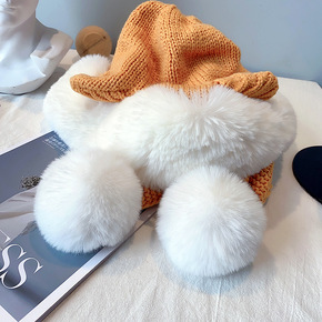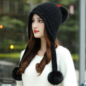 帽子女秋冬季韩版百搭护耳毛线帽加厚加绒保暖毛球学生...
