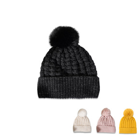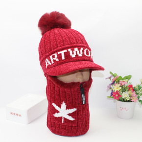 韩版时尚秋冬新款亮丝带毛球加绒保暖针织帽女可爱百搭...