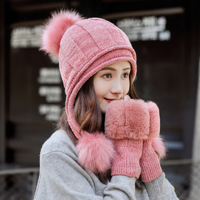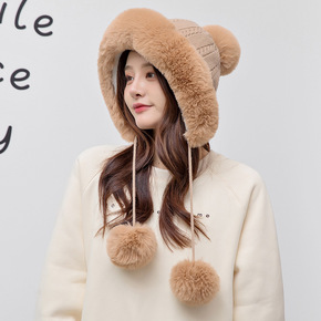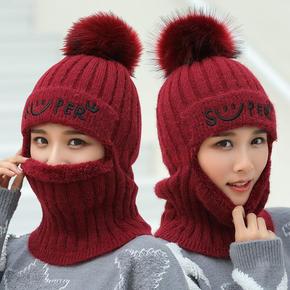 帽子女冬天加绒加厚骑车防风帽保暖护耳帽围脖冬季防寒...