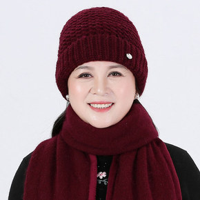 冬季中老年人帽子女奶奶毛线帽加绒保暖冬天妈妈老年人...