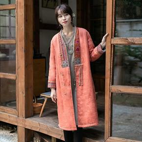 冬季新款风长棉衣外套中长款民族风棉麻棉服大衣中式女...