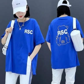 开叉小熊印花中长款T恤短袖女2022年夏季新款韩版...