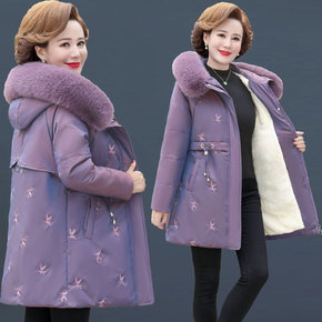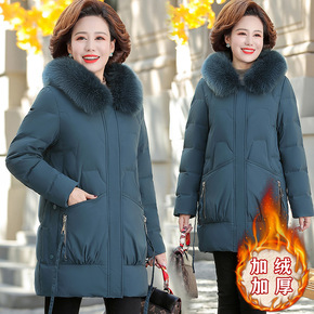 妈妈冬装中长款棉衣外套新款羽绒棉服加绒加厚时尚中老...