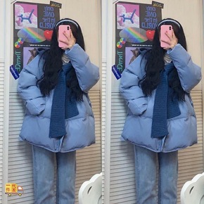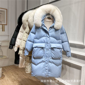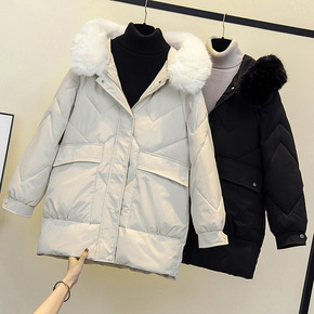 现货服女中长款2021冬季新款韩版宽松廓形加厚袄羽...