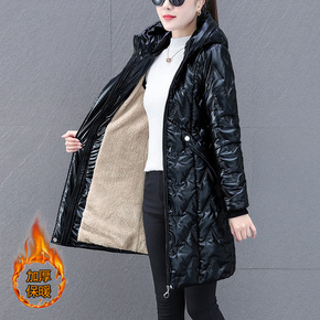 棉衣棉服女中长款冬季新款宽松加绒加厚妈妈装亮面保暖...