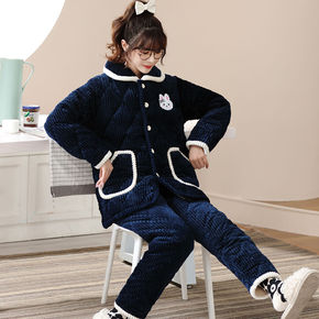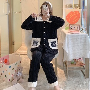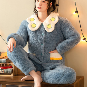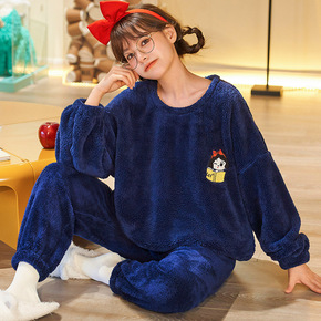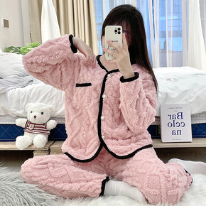 冬季珊瑚绒睡衣女秋冬新款加厚加绒可爱法兰绒家居服冬...
