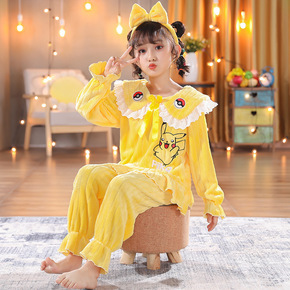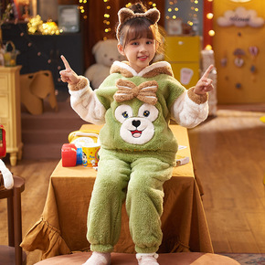 2021秋冬新款儿童法兰绒加厚睡衣女孩甜美珊瑚加绒...