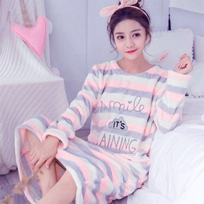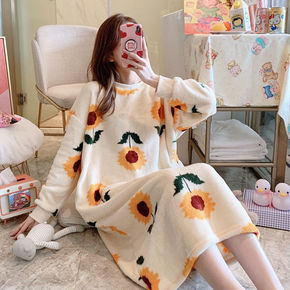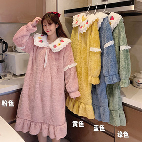 睡衣女冬季法兰绒睡裙女冬珊瑚绒可爱厚中长款学生韩版...