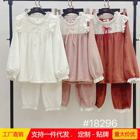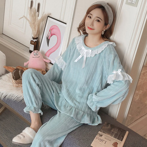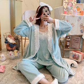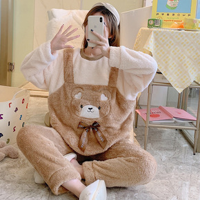 日系ins秋冬季加厚睡衣可外穿套装可爱甜美大码法兰...
