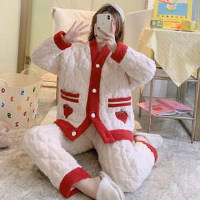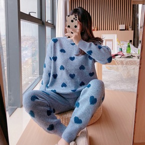 2021网红可爱爱心软绵绵睡衣女秋冬季加厚长袖甜美...