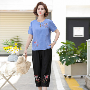 2022夏中老年妈妈装棉衫短袖绣花蝴蝶奶奶复古提花...