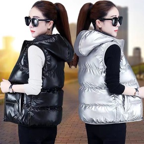 羽绒棉马甲女2021秋冬季新款韩版显瘦短款亮面立领...