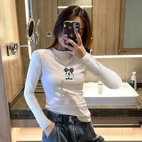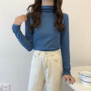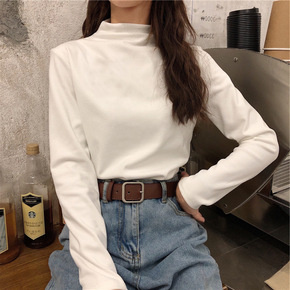 2022年新款春秋季半高领白色打底衫女长袖T恤百搭...