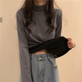 半高领打底衫女秋冬百搭2021新款修身韩版金丝绒洋...