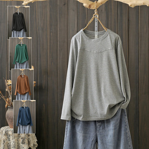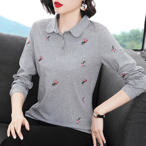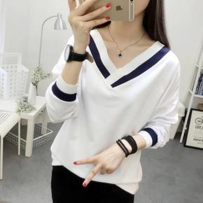 大码女装秋装2021新款学院风V领长袖T恤女韩版学...