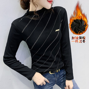 加绒加厚冬季内搭2021新款洋气时尚重工烫钻小衫百...