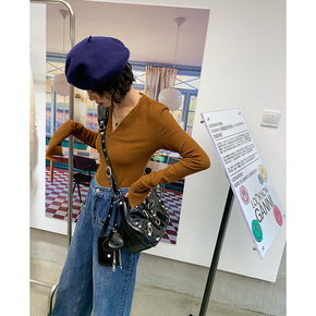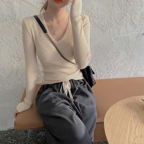 v领上衣女2021冬季百搭显瘦针织衫秋冬小众设计感...