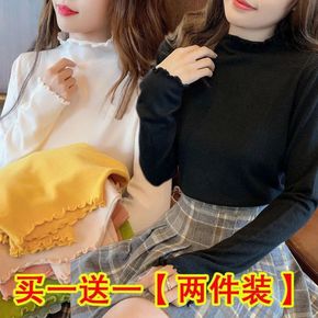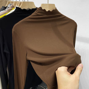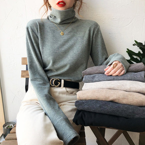 自制莫代尔高领打底衫女2021秋冬内搭堆堆领长袖T...
