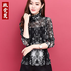 网纱蕾丝半高领打底衫女长袖秋冬2021新款薄款上衣...