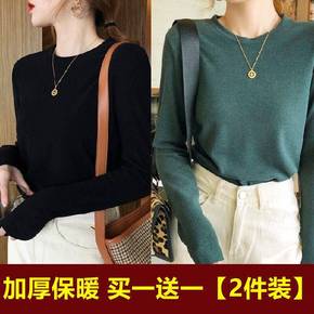 单/两件装圆领加厚保暖打底衫秋冬韩版百搭修身内搭长...