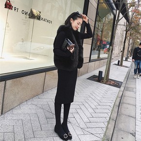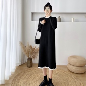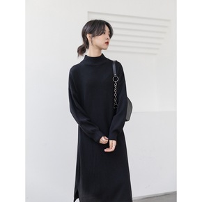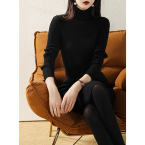 秋冬黑色打底毛衣裙优质新款韩版气质中长款高领显瘦针...